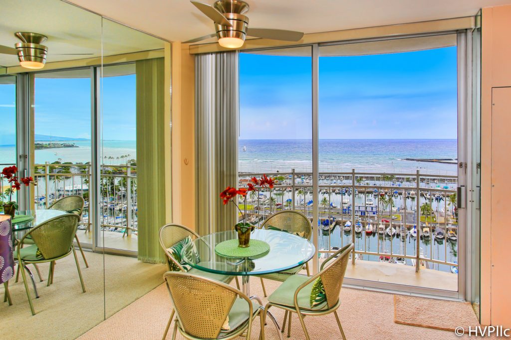 The Ilikai Marina is a condominium building located on the Ocean/Marina front. The Lagoon and Waikiki Beach are just a few steps from the front door. The ocean side condos have expansive ocean views that are unforgettable. Sailboats, canoes, whales, beaches, lagoon, palm trees, rainbows and Friday Night Fireworks, can all be seen from the 650 sq.ft. 1 bedroom condos.